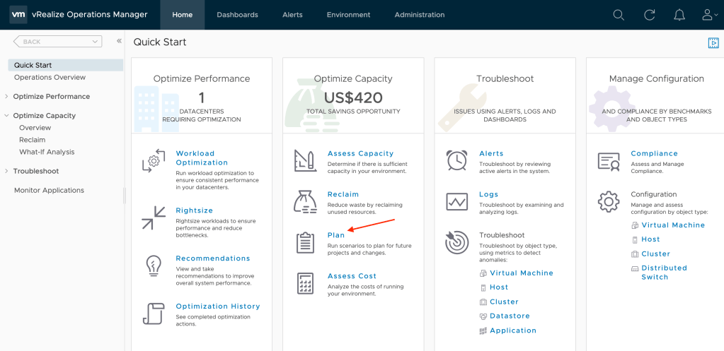 Did you know that you can use vRealize Operations for some quick-and-dirty sizing for VMware Cloud on AWS? If you have vRealize Operations deployed on prem, beginning with version 6.7 (we are now at 7.5!) you can actually run a quick planning exercise to model out what it might cost to move some / all of your workloads to VMware Cloud on AWS!