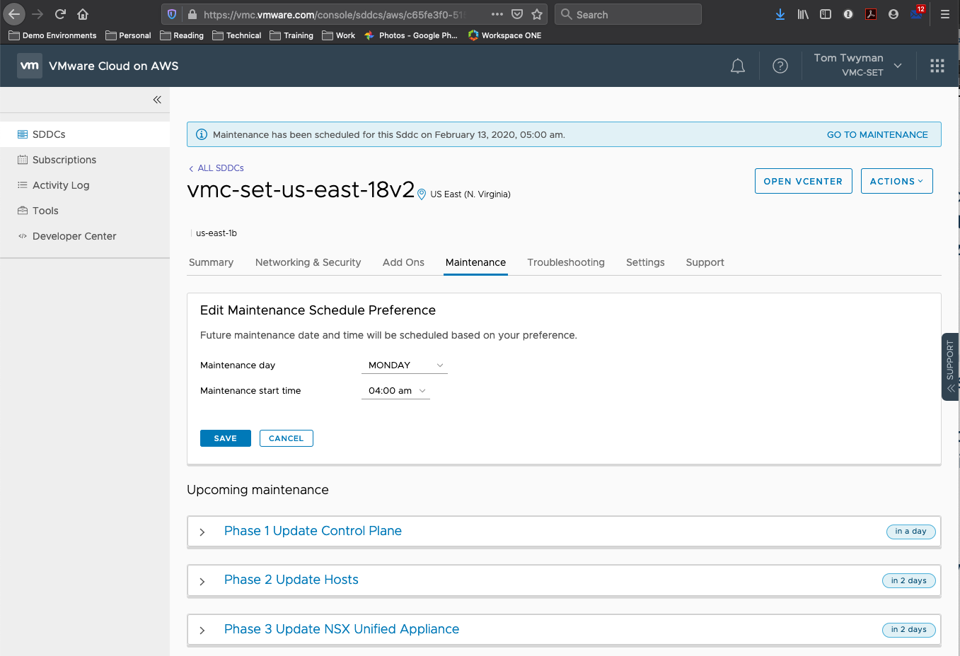In my previous post I discussed the importance of being aware of when your VMware Cloud on AWS SDDC will be upgraded, as well as understanding what new features might be available to you after the upgrade.