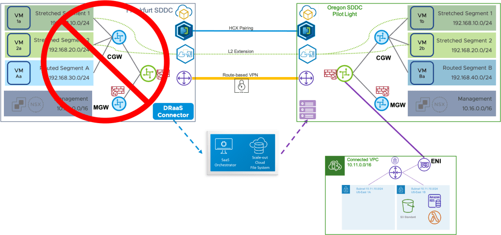 Essentially, the document we wrote runs through several scenarios – 5 scenarios for actual outages, and 3 for testing purposes – to try and demonstrate what one can / should expect when using HCX stretched networking with VMware Cloud Disaster recovery. Based on some information from the HCX team I had to rewrite large sections of it this past summer, but I am happy to say it has been once again re-released on VMware’s Tech Zone for VMware Cloud on AWS.